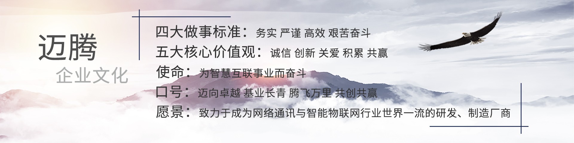 深圳市邁騰電子有限公司(簡稱邁騰),成立于2008年2月,是一家專注于網(wǎng)絡通訊與物聯(lián)網(wǎng)產品開發(fā)、生產、銷售及服務為一體的國家級高科技企業(yè)。目前是國、內外網(wǎng)絡通訊與物聯(lián)網(wǎng)行業(yè)前列的研發(fā)、制造廠商。